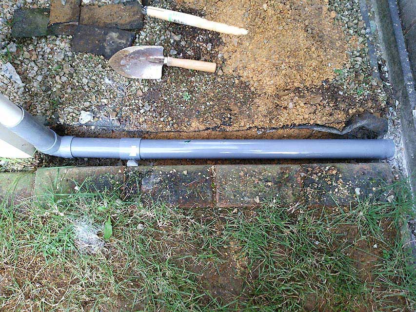 ここで本日2回目のトラブル発生。地面に埋める排水パイプの長さが足りないことが判明。排水パイプのカットを適当にしてしまた事が原因です。